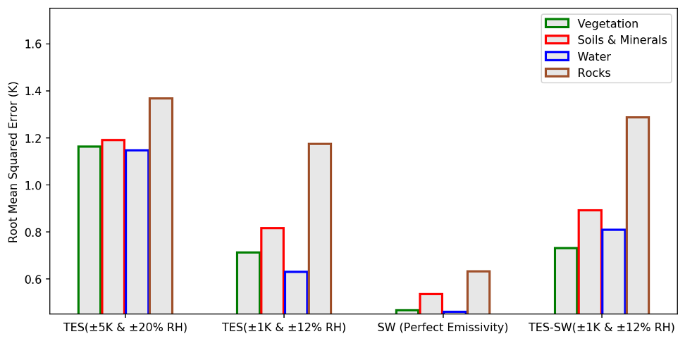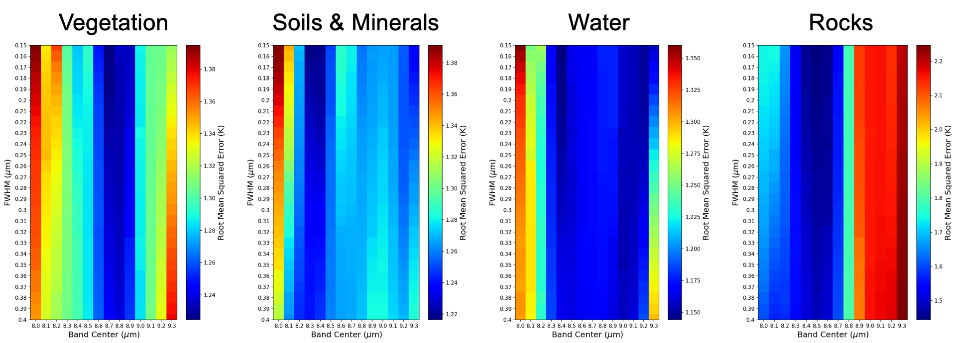This project aims support the definition of requirements for future Landsat thermal instruments in retrieving accurate land-surface temperature, which represents a key input parameter to several science applications (e.g., estimation of evapotranspiration, drought monitoring). As such, RIT conducted simulated studies to identify the optimal number, shape and placement of Long Wavelength Infrared (LWIR) bands, which will help minimize errors in the surface temperature retrieval process. In these studies, RIT looked at the performance of two temperature retrieval algorithms in determining requirements for future Landsat thermal instruments; (1) split-window and (2) temperature/emissivity separation. We also developed a TES-driven SW algorithm to assess the potential for improving surface temperature estimations using a hybrid approach.