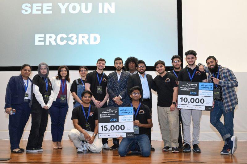 We are proud to announce the remarkable achievements of 2 RIT teams at the 2nd Emirates Robotics Competition, held at Khalifa University in Abu Dhabi. The students Mohammad Faieq Daoud, Rohan Ashar, Raghul Saravanan, Thisas Ranhiru, Tayyab Sajid, Ibrahim Alhaiek and Yusuf Mirza excelled, with one team securing first place in the Autonomous Navigation Challenge and another achieving second place in the Manipulation Challenge. This prestigious event, co-organized by Khalifa University, Dubai Future Labs and RIT Dubai, shortlisted 27 teams from 10 UAE universities. Congratulations to our students and mentors for their outstanding performance and for showcasing RIT Dubai's commitment to excellence!