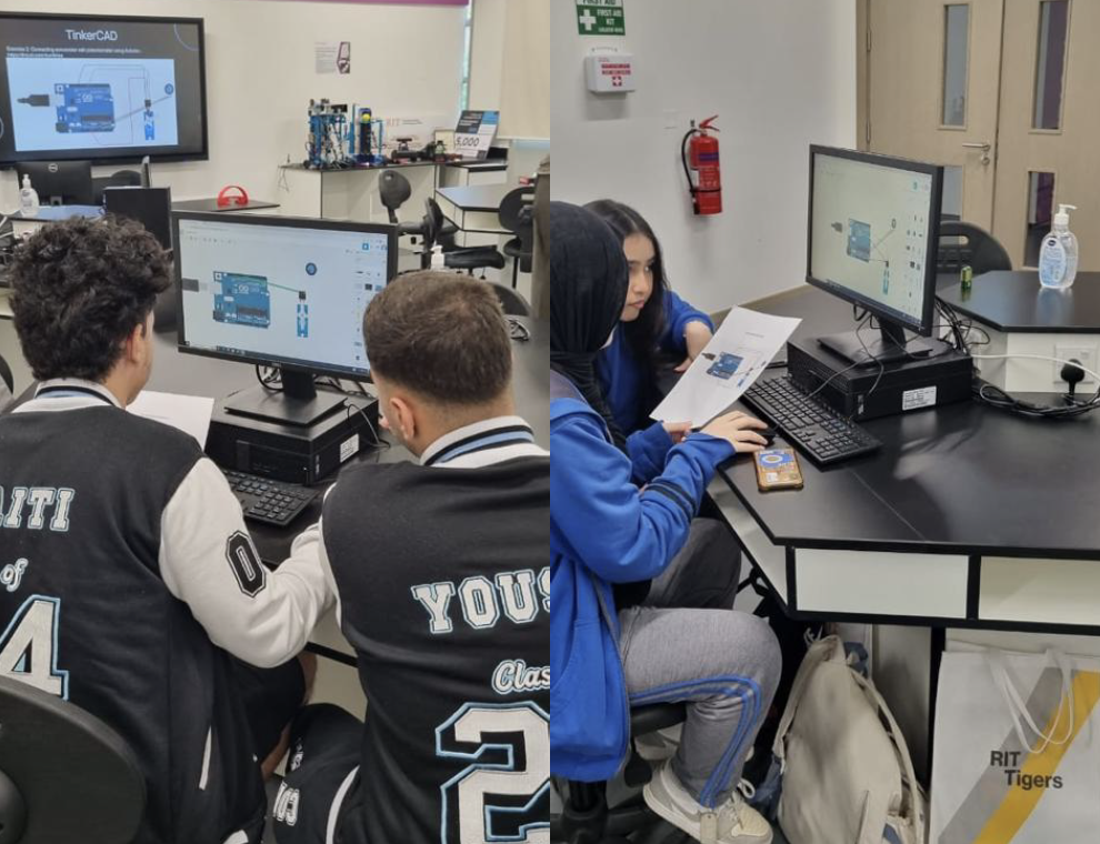 These workshops were specifically designed for high school students, covering a range of topics related to technology and innovation. The program began with a brief introduction and a tour of our lab, followed by sessions on Arduino programming and the basics of robotics. Students had the opportunity to explore and experiment hands-on with Tinkercad simulations, gaining an understanding of basic robot motor control, and working directly with Arduino boards. These workshops provided a comprehensive and engaging learning experience, allowing students to delve into the world of robotics and programming.