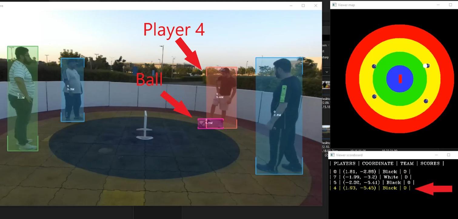 The Target Football Scoring Game is an innovative project that leverages machine learning and computer vision to enhance football gameplay and scoring. Designed for multiple teams of equal size, the game takes place on a circular field with color-coded zones indicating varying scores based on distance from the central goal. Utilizing a stereo camera setup, the system pinpoints the x, y, and depth locations of each pixel in a frame, identifies players and the ball, and maps them onto a virtual 2D field. Teams are distinguished by shirt colors, calibrated before each game, ensuring accurate team recognition. Scores are calculated based on the zone from which goals are scored. Despite occasional misses in high-paced scenarios, this system demonstrates a promising, device-free approach to sports analytics, with plans for further enhancements by integrating multiple camera feeds into a unified map. The project was selected as the best project at Imagine RIT Dubai in the student clubs category.