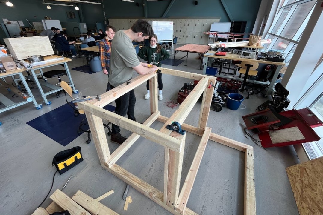 Each year, all of the glass panels surrounding the ice rink are removed for cleaning and to clear up event space. Throughout the summer, the glass panels are cleaned by hand and must at some point be turned over. Previously, the rink staff had to flip the glass over by lifting the panel up on one edge and letting it drop down onto the table. Our design replaces this process with a much safer flipping process and removes the need to manually lift the glass panels vertically entirely. Each panel can way up to 250 lbs, so by removing the need to manually lift and control the glass panels, the rink staff is under much safer and sustainable conditions.