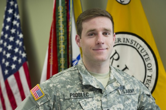 Adam Podolec will be sworn in as a commissioned officer in the U.S. Army before he and the rest of RIT’s graduates cross the stage. -