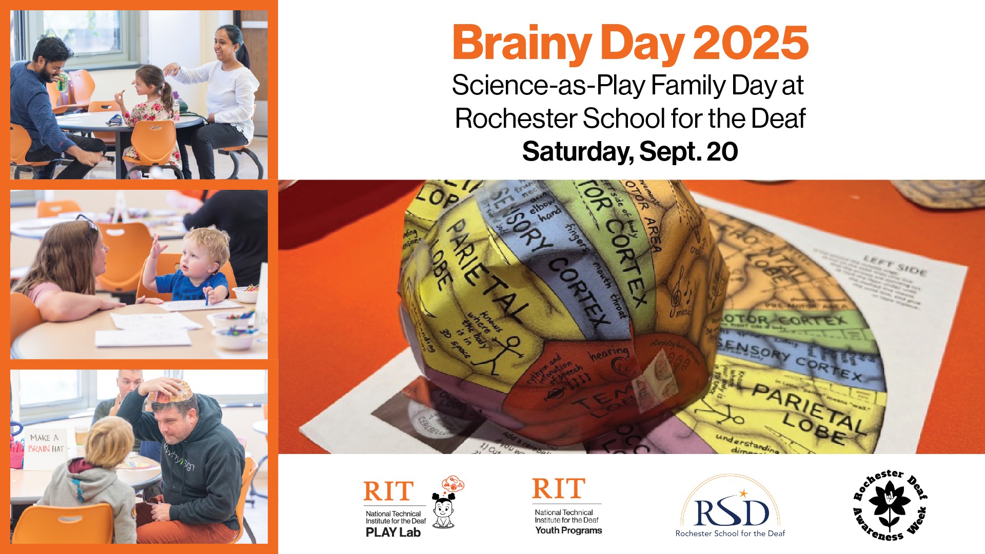 Families with Deaf/Hard of Hearing children of all ages are welcome to join us at our fun Science-as-Play Family Day! Lunch and water are provided. Lunch options are sandwiches, pizza, Goldfish crackers & chips. This event is part of Rochester Deaf Awareness Week!