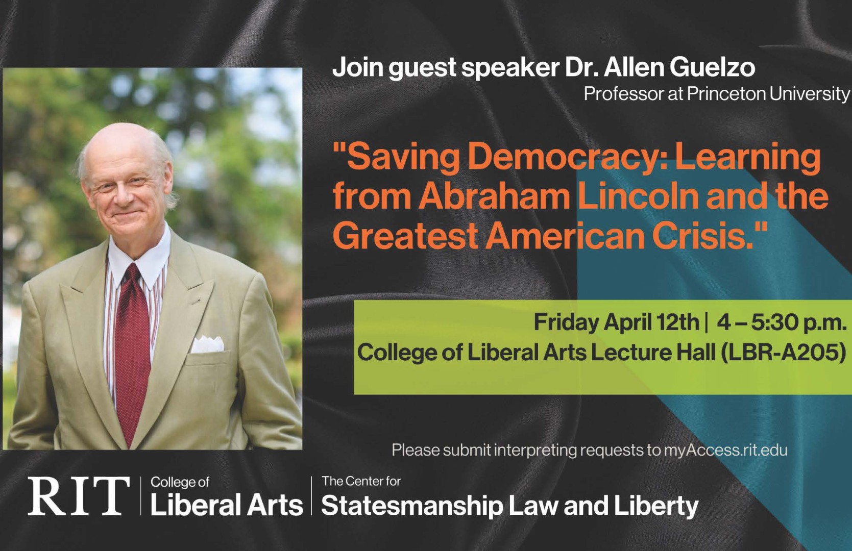 The Center for Statesmanship Law and Liberty welcomes keynote speaker Dr. Allen C. Guelzo to its 7th Annual Symposium "Saving Democracy: Learning from Abraham Lincoln and the Greatest American Crisis".