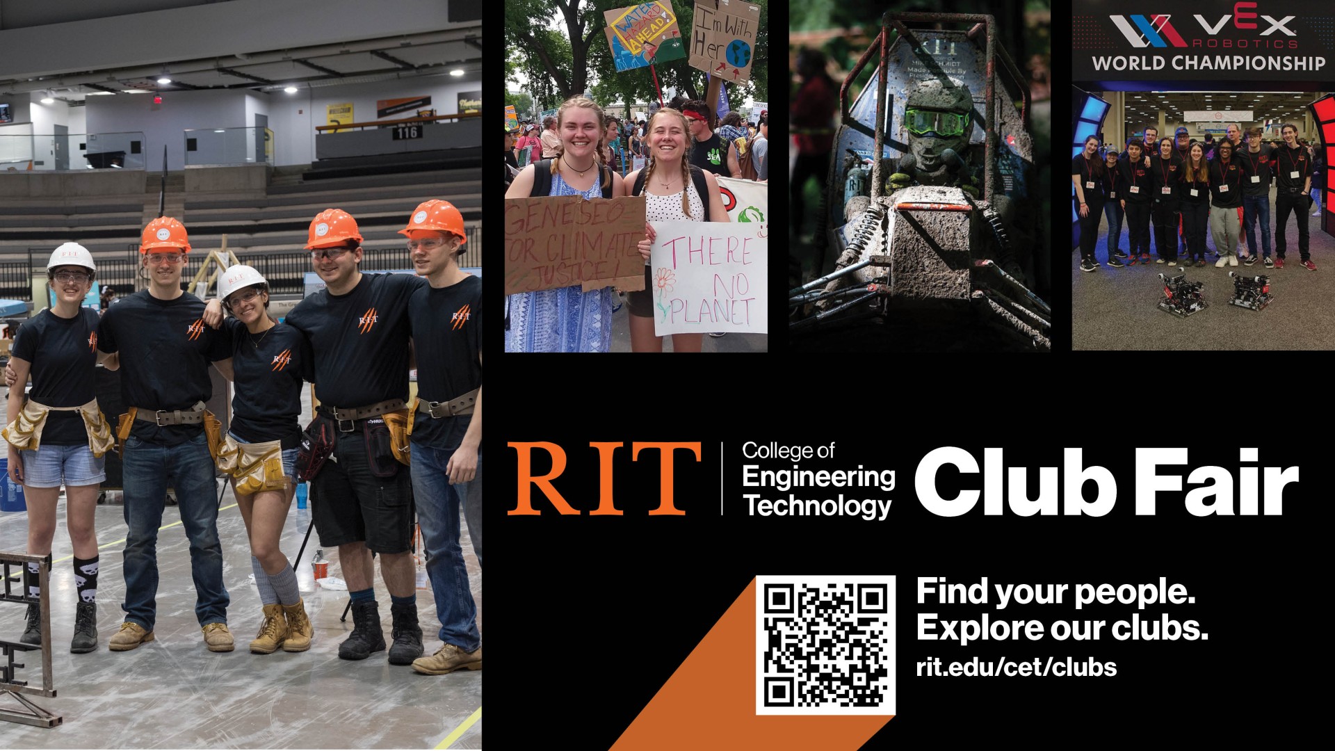 Join us in McGowan Commons to explore our CET clubs. From Concrete Canoe, BAJA, Electric Vehicle Team, Space Exploration, Women in Technology, Steel Bridge, Student Enviornmental Action League and more, you're sure to find your fit and your people!