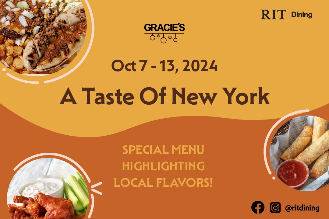 Join us for a Tiger Taste of New York on Thursday, Sept. 18 through Sunday, Sept. 21. We’re serving up a special menu featuring iconic local flavors you won’t want to miss! Participating Dining locations include: Café at the Crossroads, Gracie's, Kitchen at Brick City, RITZ, Patio at Global Village.