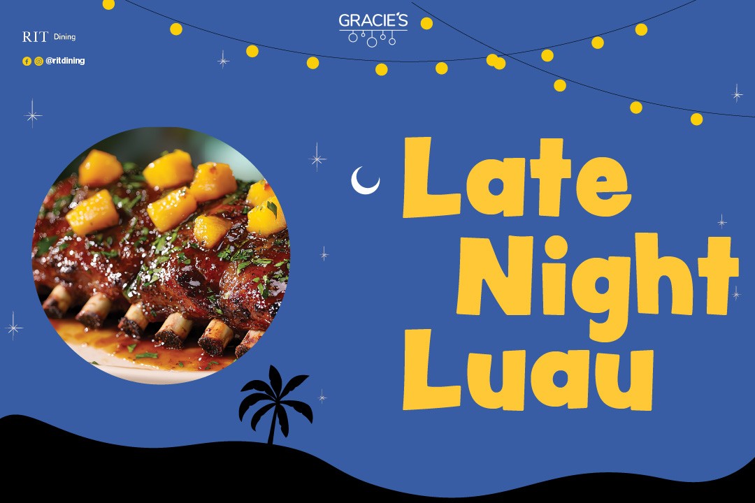 What time is it? Luau time! Join us for an end of the semester celebration at Gracie's on Monday, April 28, from 9 p.m.- 1 a.m. We're serving up some deliciousness with a tropical twist. The menu includes: