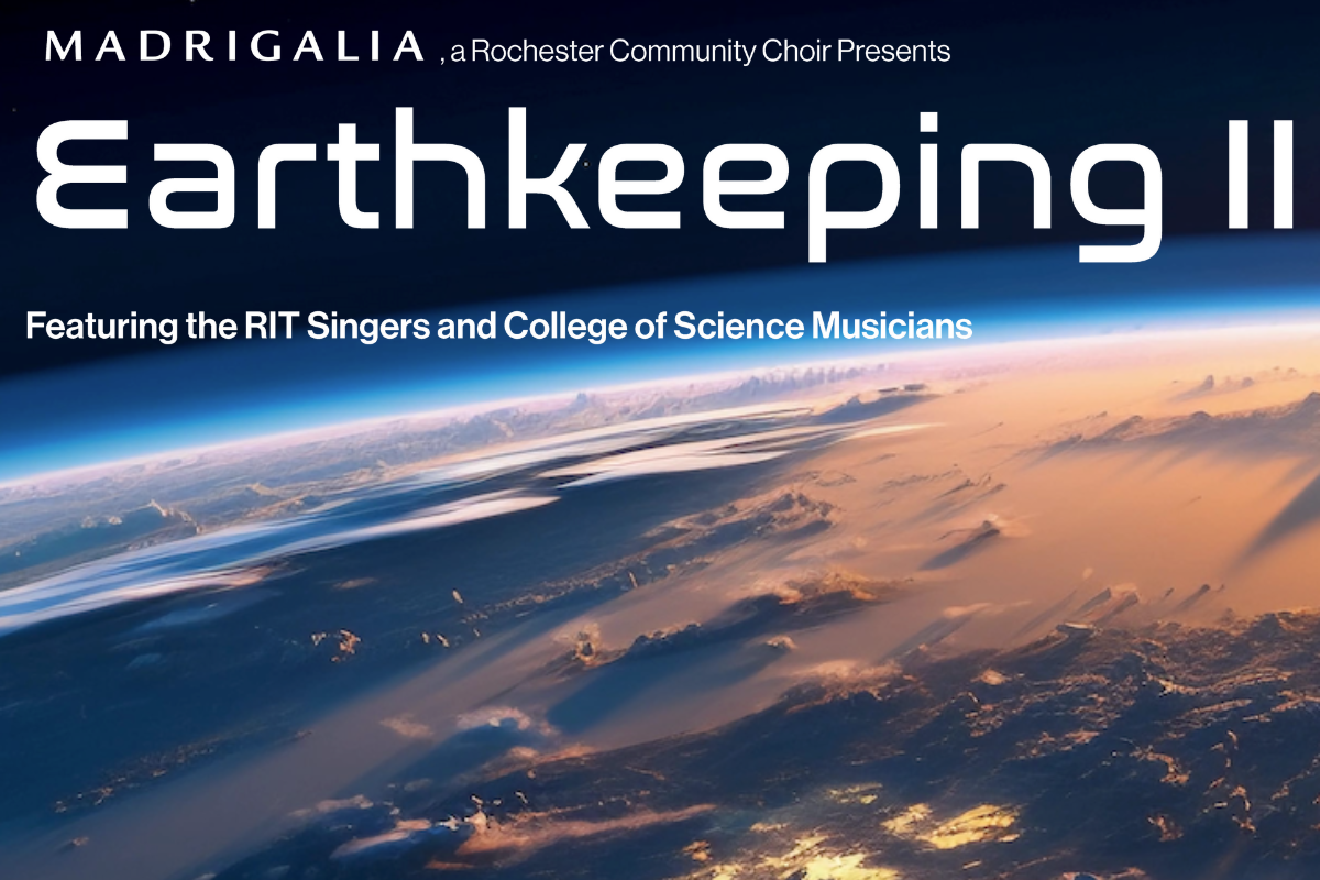 Join the College of Science and the School of Performing Arts for an afternoon of Science and Song, as Madrigalia, now in its 46th concert season, will present its 'Earthkeeping' program in conjunction with the RIT Singers featuring choral works concerning our planet and its future. Following the concert, there will be a reception including College of Science student researchers and environmental and sustainability-focused campus groups.