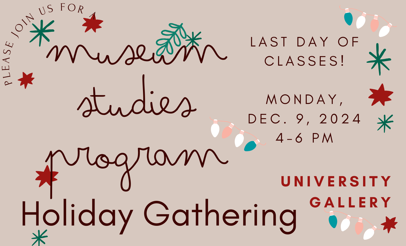 Join the faculty and students of the Museum Studies program for an end-of-the-semester gathering with games, crafts, and refreshments at the University Gallery on campus.