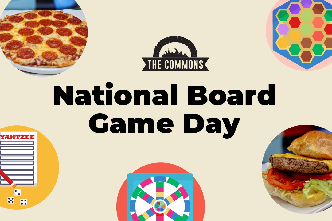 Join us for National Board Game Day at the Commons on Friday, April 11! We will have a variety of board games for everyone to enjoy. Whether you're a seasoned player or new to board games, there's something for everyone. See you there!