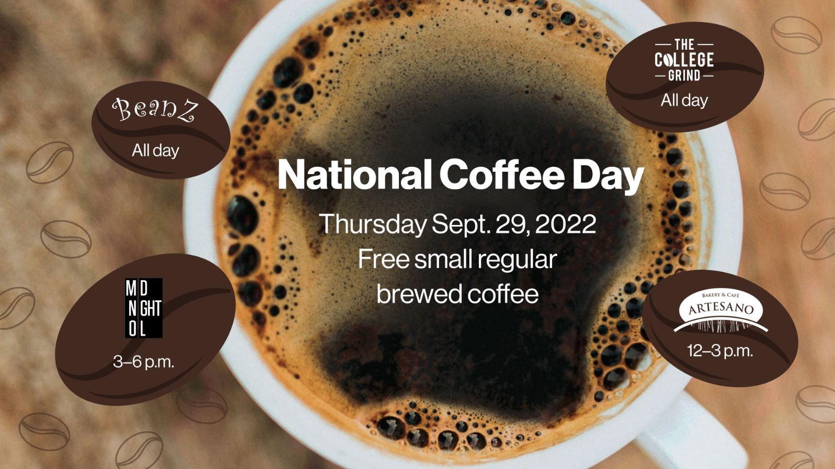 Join us in celebrating National Coffee Day at one of your favorite coffee spots on campus on Thursday, Sept. 29.