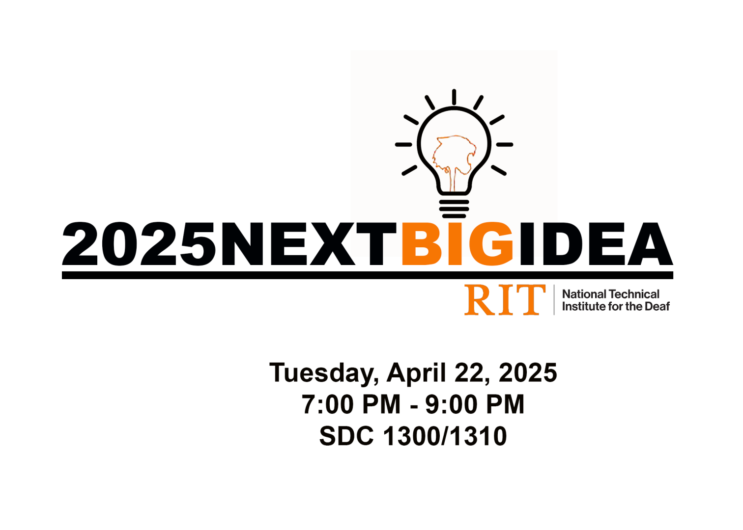 The Next Big Idea is an annual innovation competition at NTID sponsored by ZVRS and Purple. Teams of deaf and hard-of-hearing students work together to create a product, business, service, or type of technology that solves a problem or eliminates an existing challenge for potential consumers and/or users everywhere.