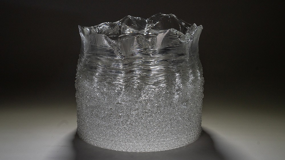Each work in "Orbital Resonance" emerges from molten glass, is shaped through a unique 3D printing technology, and transcends its digital origins into the artistic realms of questions and contemplation. These objects are not merely products of code; they are dynamic dialogues with the material itself. Stern's intimacy and understanding of glass's relationship with gravity, viscosity, and temperature converge to influence each form. Every piece is a conversation between the precision of digital design and the inherent fluidity of glass, resulting in a vulnerable narrative told through the collaboration of artist, machine, and material.