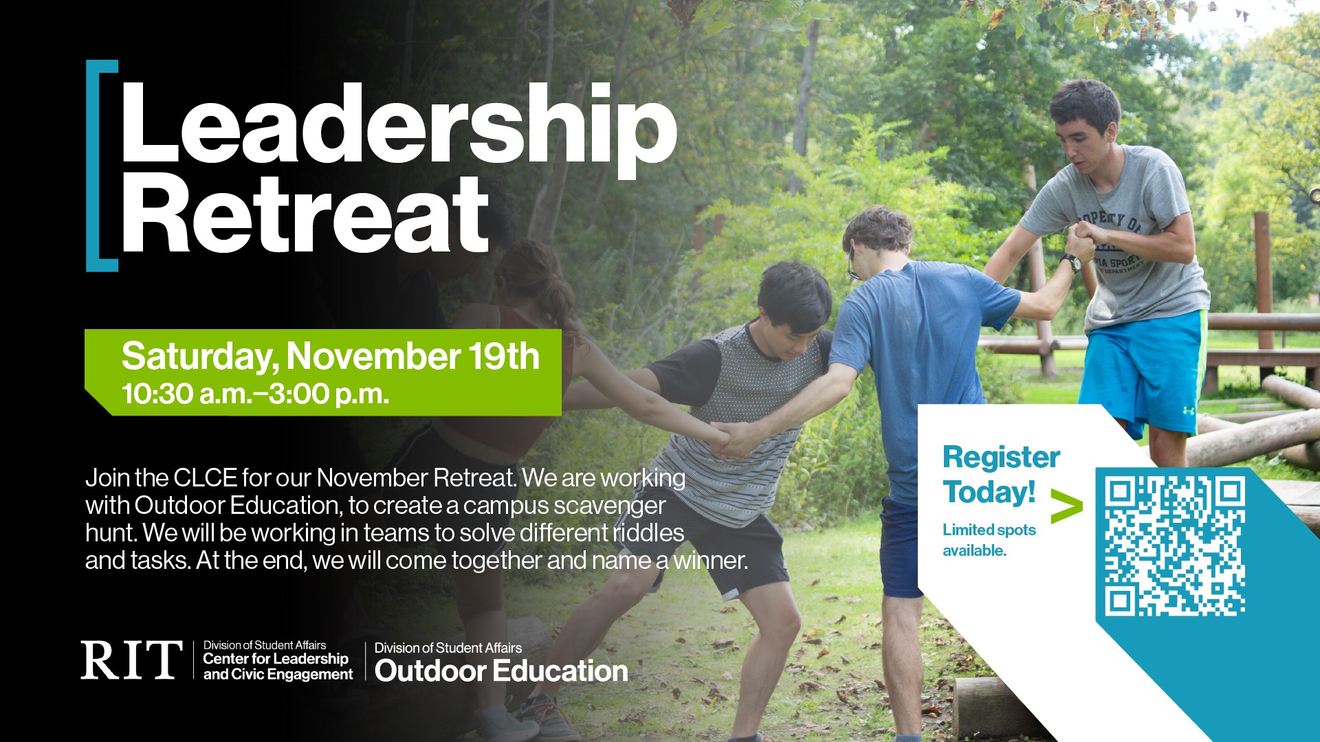 Join the CLCE and Outdoor Education for our first on-campus retreat! Build teams and work through mental and physical obstacles this November. This experience will lean on your ability to work as a team and tap into your leadership abilities.