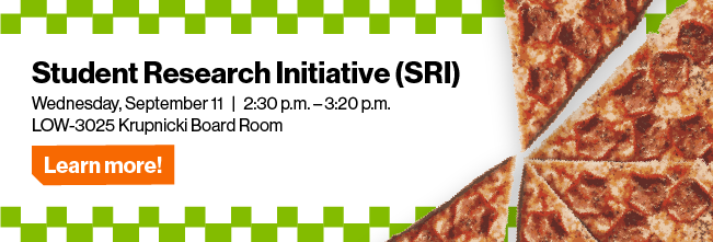 The Student Research Initiative (SRI) at Saunders allows students to gain first-hand research experience by working with a faculty member. Interested? Stop by to learn more about the program, meet faculty members, and enjoy some pizza.