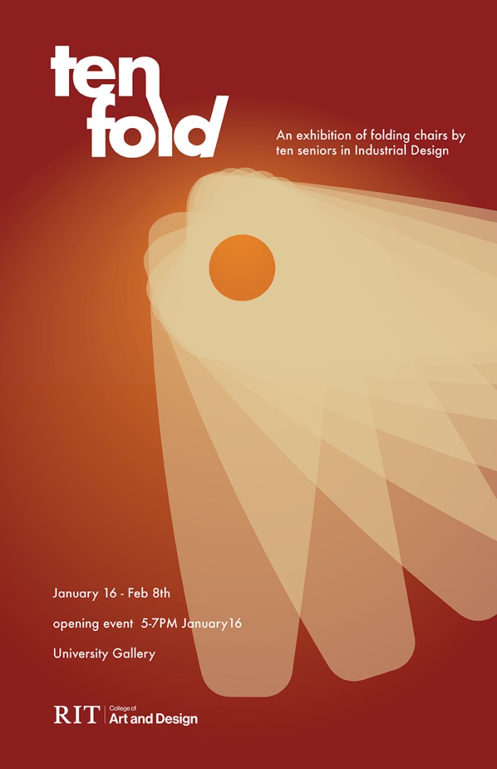 University Gallery presents an exhibition of folding chairs conceived, iterated and built by 10 industrial design students from Associate Professor Amos Scully's Senior ID Studio.