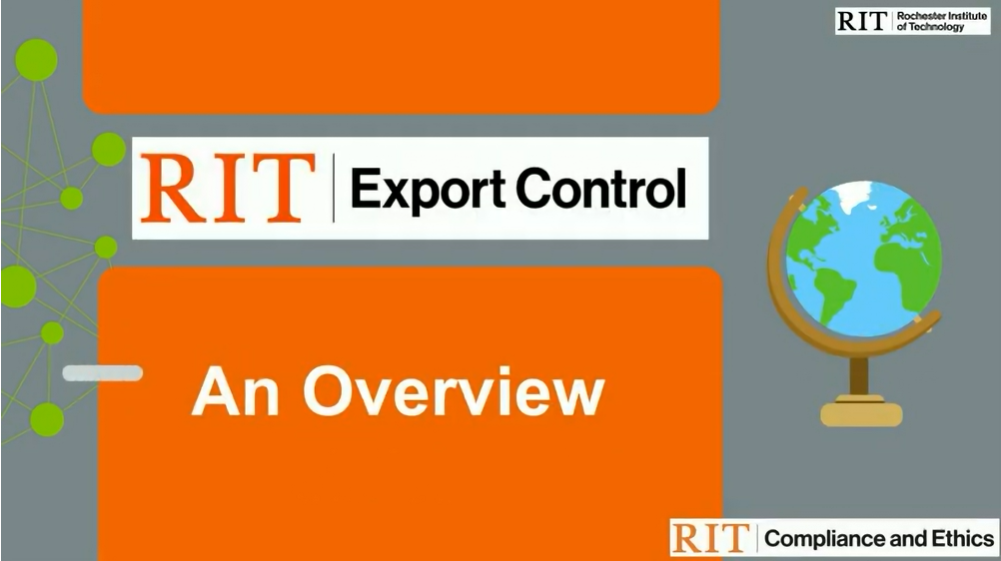 Watch this video to learn the basics of RIT's Export Control Program, including the what, why, and how of export control, and where and who to go to for assistance.
