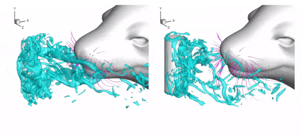 Our current research centers on computational modeling for simulating complex multiphysics biological processes with the full complexity of the human/animal anatomy for applications including personalized simulation-assisted treatment planning, device development and optimization, bio-inspired design, and basic research. Particular emphases are on passive and active fluid-structure-acoustics interaction, neuromuscular biomechanics, inverse tissue characterization/parameterization, and machine-learning-aided modeling.