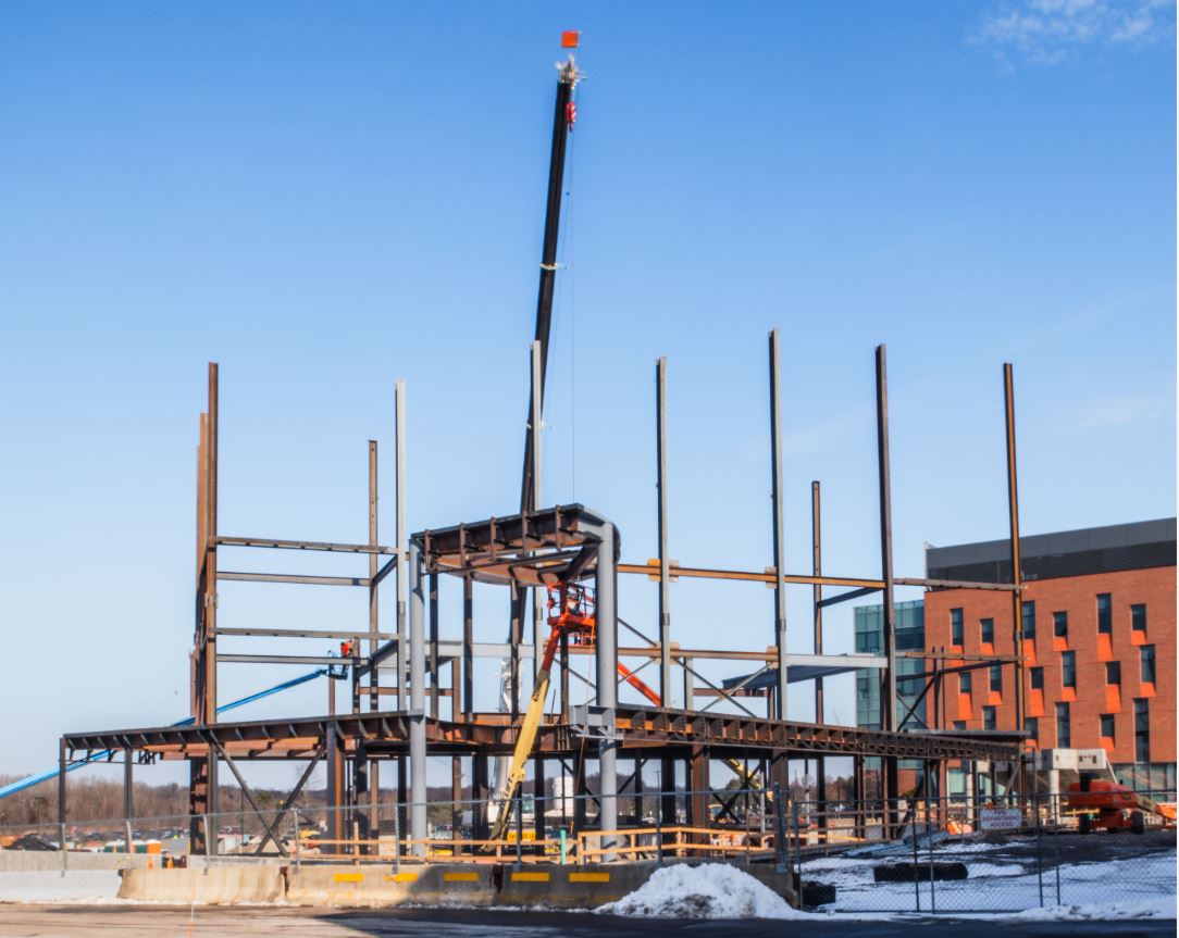 Construction continues on the new two-story research facility, located on the southwest side of campus near R Lot and Global Village. The new building will provide 18 laboratory spaces for science, computing, and engineering teams. Occupancy is expected in fall 2024.
