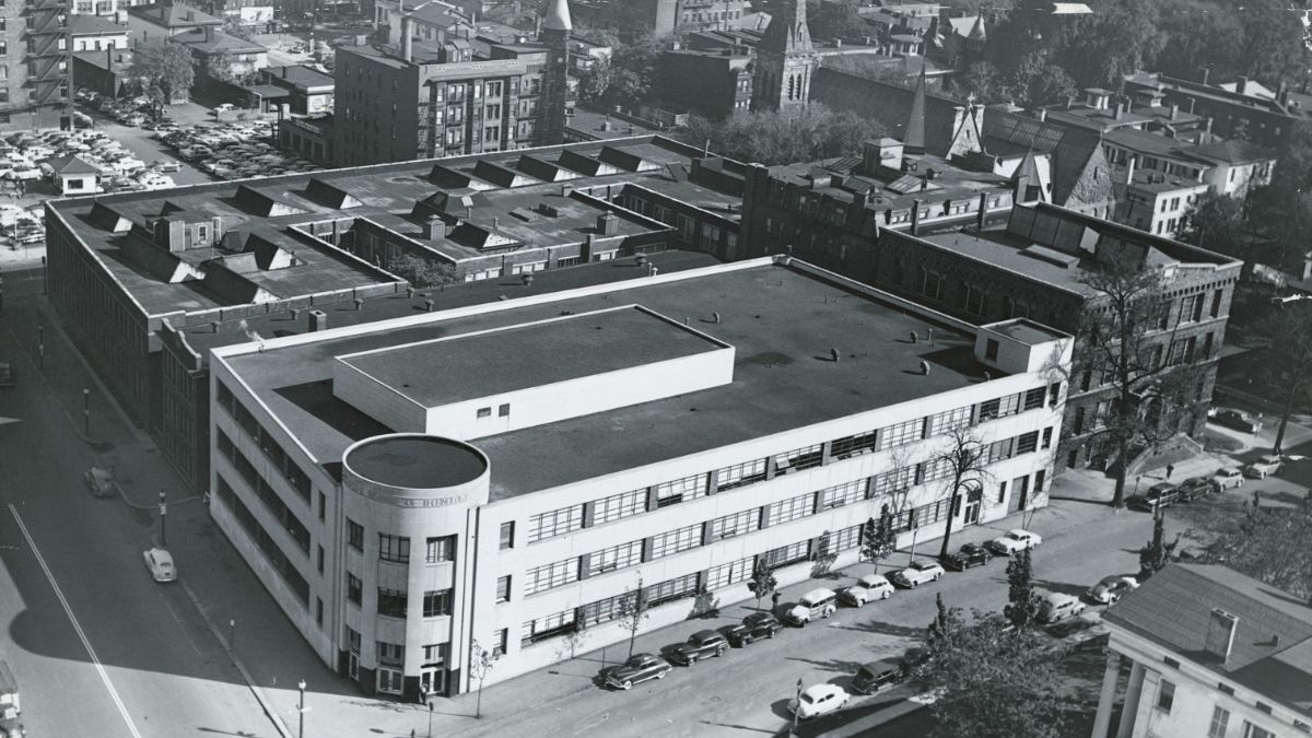 The Eastman Building opens on Plymouth Avenue and the Erie Canal Aqueduct. George Eastman, founder of Eastman Kodak Co., donates the funds for this building and is an active benefactor of the institute until his death in 1932.