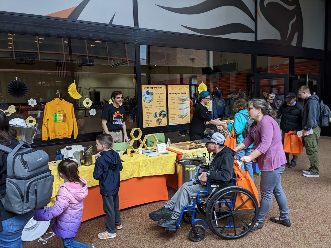 The RIT Beekeeping club aims to educate its members on different aspects of beekeeping, but also to educate the community about issues related to beekeeping and sustainability. Club members working the exhibit can answer any questions visitors may have about bees and provide resources for more learning. Our exhibit will have bee suits, hive inspection tools, a standard demonstration hive, pictures and posters where individuals can find the queen and see bees up close, and a hand-crank honey extractor that people can try. Our visitor experience can be given in English, Spanish, and ASL so people from all walks of life, backgrounds, and communication modes are welcome!