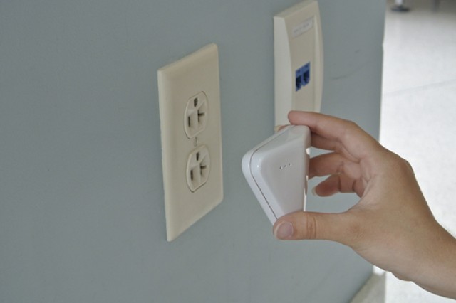 The Wavio wireless sound recognition system, on display at Imagine RIT, notifies the user via smartphone or tablet of household sounds, such as a doorbell ringing. -