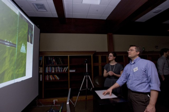 Visitors to the tangiPaint: A Tangible Digital Art System exhibit in the Gordon Field House can paint on an iPad. -