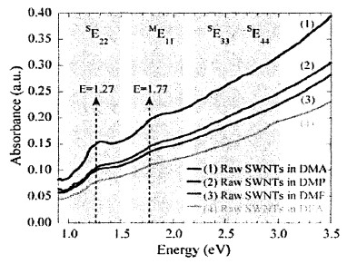 A core novel aspect of this invention lies in its strategic use of specific amide-based organic solvents in combination with physical separation techniques. The method involves mixing nanostructured carbon, such as single-walled carbon nanotubes (SWNTs), with one or more amides, including N,N-dimethylformamide (DMF), N-methyl-2-pyrrolidone (NMP), N,N-dimethylacetamide (DMAc), formamide, or acetamide. This mixture is then subjected to one or more processes, including sonication, centrifugation, and ultracentrifugation. This synergistic approach effectively overcomes the strong van der Waals forces that typically cause carbon nanotubes to aggregate. The result is a highly stable and concentrated dispersion of individual carbon nanotubes or very small bundles, enabling high purity and even allowing for separation based on diameter and chirality, which is a significant advancement for tailored applications. This refined dispersion capability is crucial for achieving consistent and superior performance in devices and materials utilizing these nanomaterials.