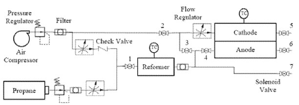 Optimized Reactant Delivery: The system features a sophisticated flow control strategy for both air and fuel. This includes a pressure regulator and filter for the air compressor, and flow regulators for precise delivery of reformate to the anode and air to the cathode. This ensures optimal stoichiometric ratios for efficient operation and maximizes energy conversion.