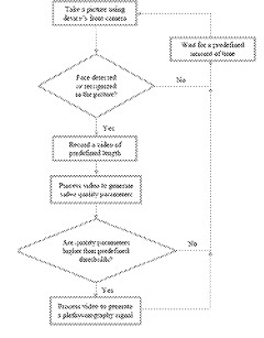 A key novel aspect of this patent is its ability to extract plethysmography signals (indicative of blood volume changes and thus cardiac activity) from standard video camera feeds. This is achieved by analyzing subtle color changes in the skin, which are caused by blood flow variations with each heartbeat. The system employs sophisticated algorithms to process video data, identify regions of interest (e.g., face, neck), and then extract the plethysmography signal. Crucially, the invention is designed to operate "opportunistically," meaning it can derive these physiological insights from video streams captured during routine activities, such as video calls, watching content on a device, or simply being in the camera's field of view. This contrasts with dedicated medical devices that require specific setup and patient compliance. The patent details methods for optimizing video capture functions (like auto-gain, white balance, and auto-focus) to ensure video quality is sufficient for accurate signal extraction, while maintaining a "pleasurable user experience" by not intruding on the primary use of the device.
