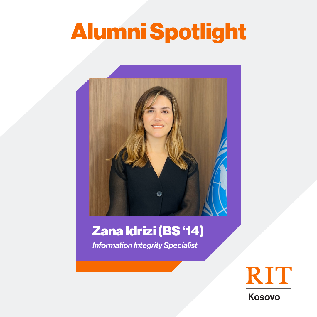 Reflecting on her time at RIT Kosovo, Zana attributes her passion for international development and her career at the UN to the comprehensive education and vibrant community she was part of. "RIT Kosovo wasn't just about learning from books; it was about real-world experiences, like the internships we got, or activities such as being part of the Model United Nations Club, which sparked my interest in global issues and led me to where I am today," she says.