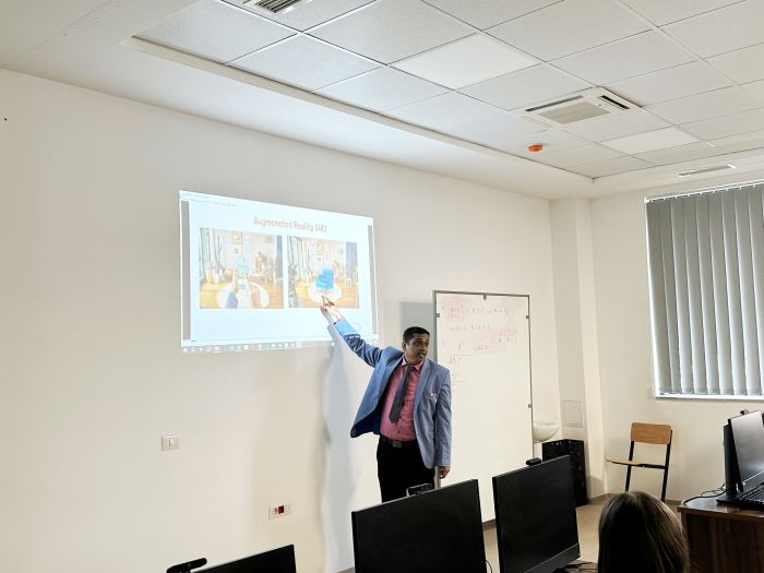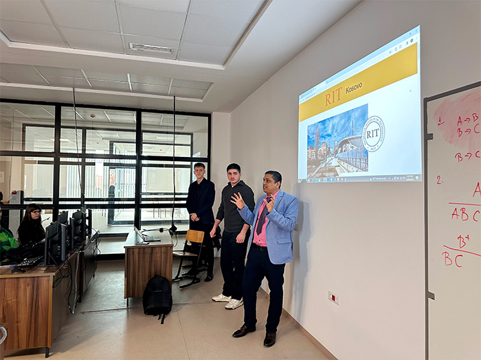 The Department of Computer Science at the University "Isa Boletini" in Mitrovica, Kosovo, recently hosted a captivating open lecture showcasing innovative computational projects by talented RIT faculty and students. Held on March 19, 2024, the event provided a platform for Lead faculty and students to present their work and share insights into their projects. Professor Debabrata Samanta, Ph.D., from the Rochester Institute of Technology Kosovo (RITK), initiated the session with an opening presentation, setting the tone for the upcoming student presentations and inspiring the audience.