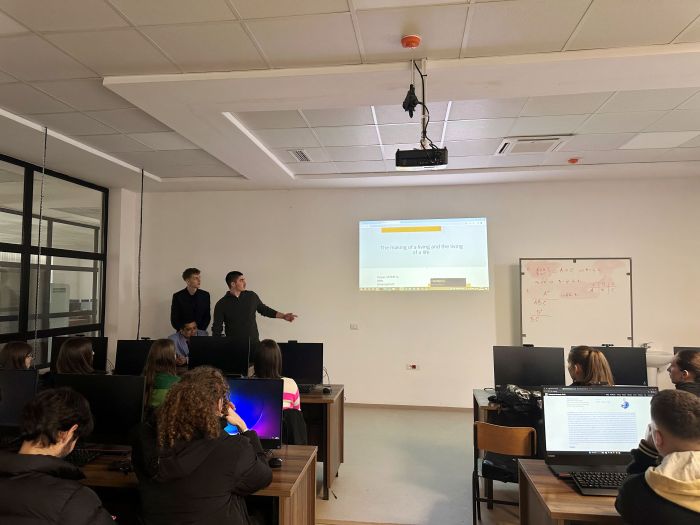The lecture hall was filled with anticipation as students and faculty members gathered to witness the culmination of months of hard work. Dr. Samanta's introductory remarks emphasized the importance of practical application in computer science. Following Dr. Samanta's introduction, three standout students showcased their projects: Diar Haxhimehmeti, a second-year student; Amela Kajtazi; and Dalmat Kodraliu, both freshmen. Each student demonstrated proficiency in different programming languages and computational skills, captivating the audience with their presentations.