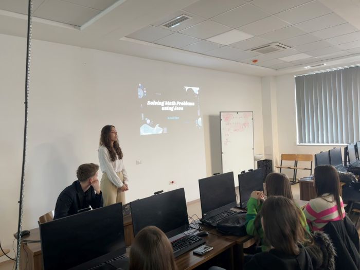 Diar Haxhimehmeti kicked off the presentations with his web development skills, presenting a dynamic website powered by PHP. The seamless integration of functionality and aesthetics impressed the audience, highlighting the significance of web development skills in today's digital landscape. Amela Kajtazi followed, demonstrating her mastery of Java by solving complex mathematical problems with elegance. Her project illustrated the practical applications of programming in solving real-world challenges, inspiring fellow students to explore computational problem-solving.