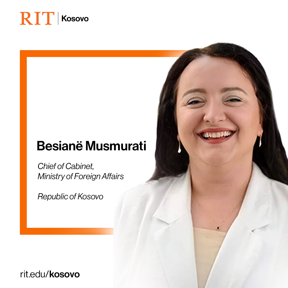 Besianë Musmurati was appointed as Director of Education in Prishtina, Republic of Kosovo in 2022. Besianë graduated from RIT Kosovo (A.U.K) in 2012 with concentrations in Management and Public Policy and pursued her Master studies in European Politics and Policies at the Catholic University of Leuven after winning the Young Cells Scheme scholarship funded by the EU. Since 2014, Besianë served as a diplomat in the Embassy of the Republic of Kosovo in the United States and in the Ministry of Foreign Affairs in Kosovo.