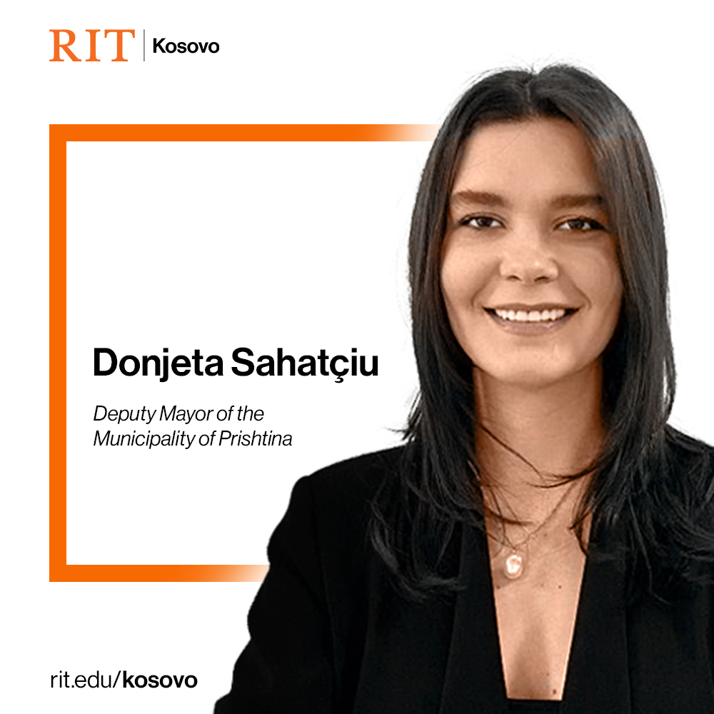 Donjeta Sahatçiu has been appointed as the first woman deputy mayor of the Capital of Republic of Kosovo, Prishtina in February, 2022. She holds a Bachelor's Degree with concentrations in Management and Economics & Statistics from RIT Kosovo (A.U.K) and has completed her Executive MBA at the University of Sheffield. Until recently, Donjeta served as a trustee in the RIT Kosovo (A.U.K) Board of Trustees, board member of STIKK and VentureUP. Donjeta comes from the business sector leading a team of 25 design and IT professionals at Rrota, a well-established digital communications agency in Prishtina where she serves as a partner. Donjeta is also the youngest female entrepreneur in the ICT sector in Kosovo.