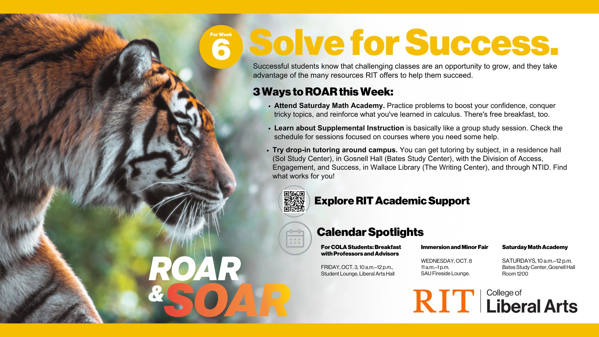 RIT College of Liberal Arts | Roar and Soar Resources | Resources for First-Year Students