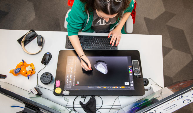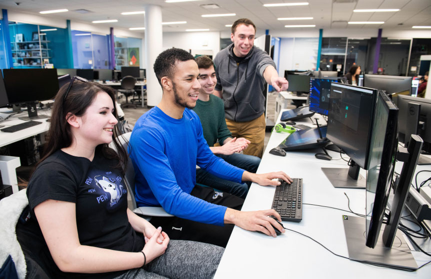 Students learn in state-of-the-art classrooms with industry-standard hardware and software, focusing on game design, 2D and 3D animation, and digital design. Our sound stage and post-production studios enhance hands-on education, bringing industry workflows into the classroom. Faculty from film, animation, games, media, and design develop and teach a wide range of courses in MAGIC.