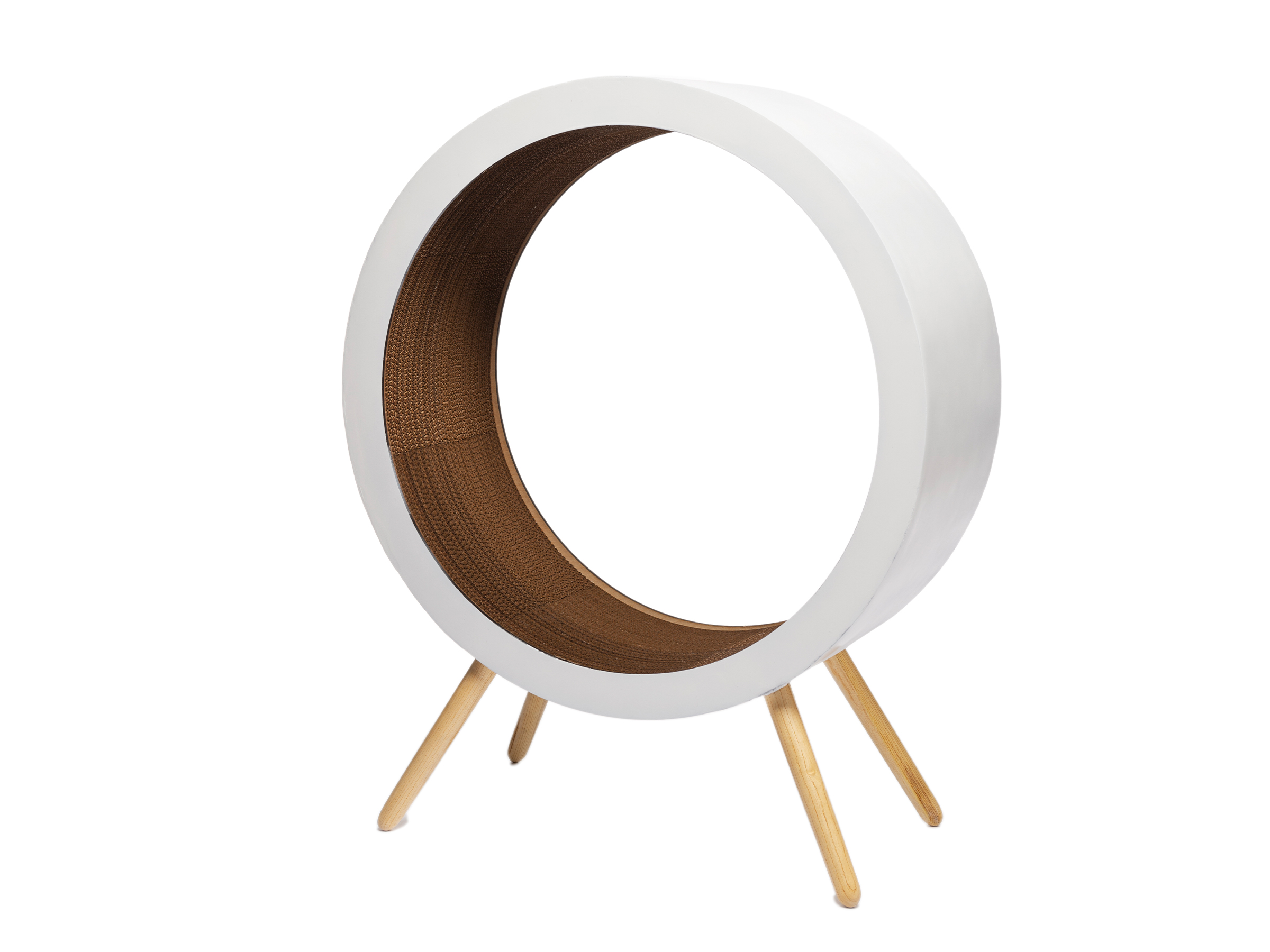 The Cat Exerciser is a cat running wheel composed of modular cat scratching boards, that is sustainable, easy to assemble and has replaceable parts. We have designed a new product for cats which can release their natural instincts and safely let them exercise freely in a small space.
