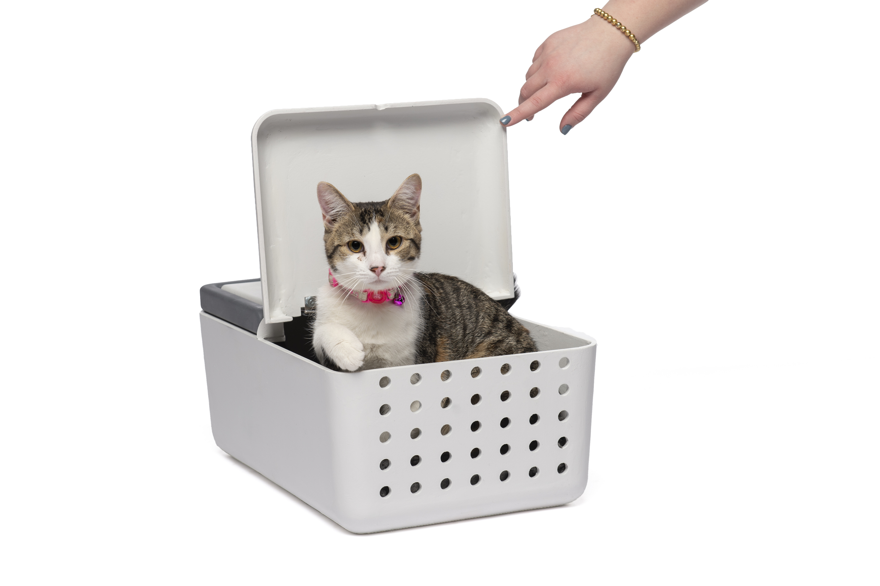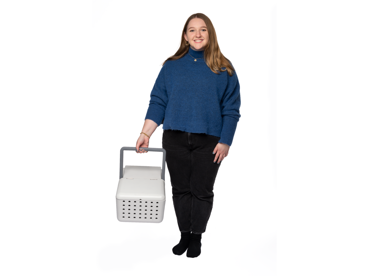 ModCarrier is a cat carrier and bed for a 2-in-1 space saving option. By having the carrier also be a bed, the cat will naturally be more comfortable with this object since there is a visual familiarity and recognizable scent with sleeping in it, causing less negative association and anxiety when going to the vet or other destinations. It is also convenient as it is airport regulation size, making it easy to use in all travel situations while staying cozy for the cat.