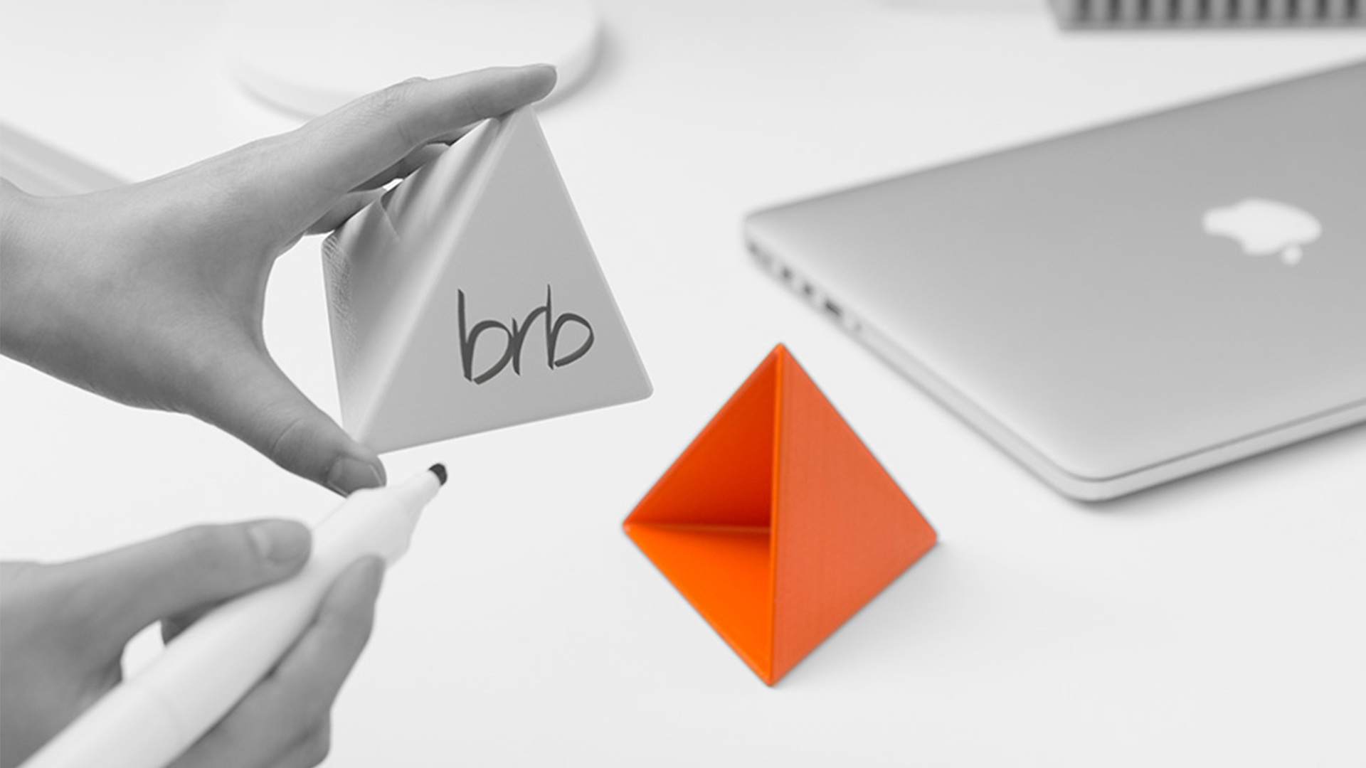 The Pyramid Messenger is a messaging device for desktops in offices. The outer shell of the pyramid comes in a variety of colors with a solid white dry erase triangular pyramid. Write any message you choose: “do not disturb,” “away from my desk,”or use it to write a checklist or to-do list! The outer shell covers all but one side of the pyramid, allowing for more direct pointed communication.