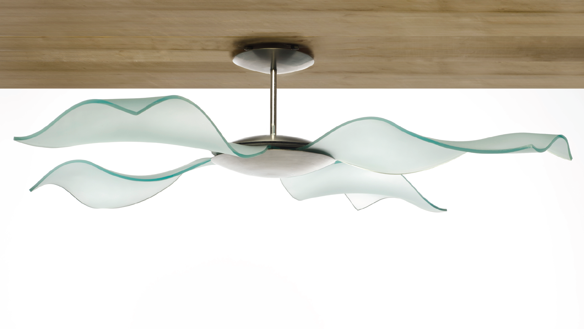 Solution: To create a ceiling fan with an appearance that reflects its function. The transparency of glass blades capitalizes on the dynamic shadows thrown from the fan, and their form reflects their function as circulators of air.