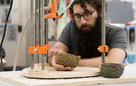 Dan Gabber, a master's ceramics student from Summit, N.J., believes this 3D ceramic printer built by RIT students will enable more freedom to create.