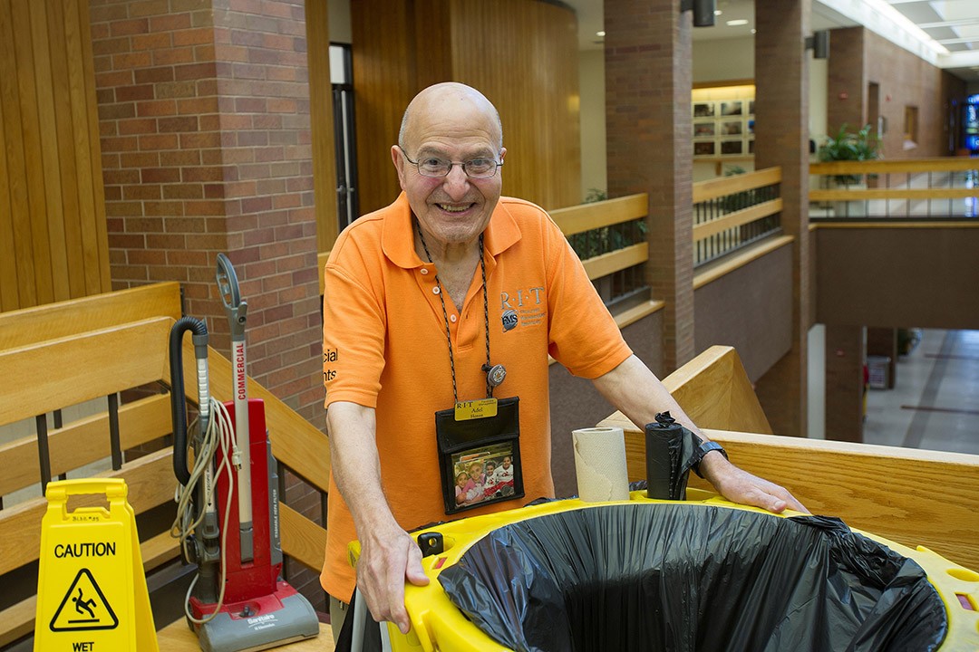He has worked for RIT for about 10 years, starting at Margaret’s House before being assigned to the National Technical Institute for the Deaf for the past seven years. His résumé includes construction work and 27 years on the custodial staff of Eastman Kodak Co., and Eastman Chemical Co., working for top executives.