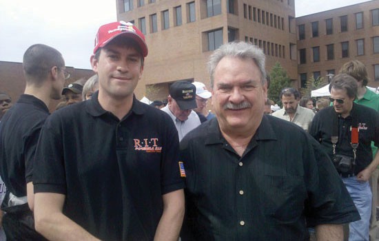 Alan Nye was awarded the 2009 Faculty Advisor Award from the Society of Automotive Engineers for his mentoring and academic support of student-engineers, particularly those like, Matt Smith (left), project manager for the RIT SAE Formula Racecar Team.