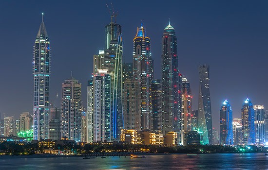 Darshan Hiranandani ’02, ’03 built 23 Marina, one of the world’s tallest residential buildings, far left, in Dubai, United Arab Emirates.