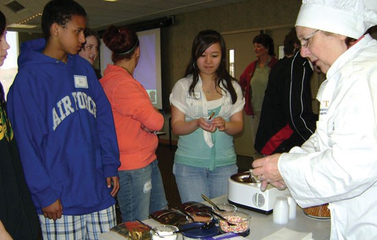 At last year’s event, students from Greece Apollo Middle School worked with Carol Whitlock, professor in the RIT School of Hospitality and Service Management to create chocolate-covered desserts. More than 70 students attended the career workshop event to learn more about opportunities in the hospitality industry as well as the fields of imaging science and information technology.