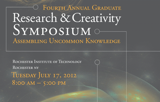 RIT hosts the Fourth annual Graduate Research and Creativity Symposium on July 17th from 8:30am to 6pm