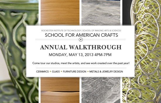 “Walkthrough” is a SAC tradition that began more than 25 years ago based on touring the school’s ceramics, glass, furniture design, metals and jewelry design studios to view work created by RIT students. Faculty, students and friends can experience the entirety of the school in a way not possible during the normal day-to-day activities.
