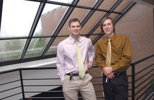 Casey Jordan ’07, left, and Patrick Bosek, founders of Jorsek, are taking advantage of the services provided by the new Albert J. Simone Center for Innovation and Entrepreneurship.
